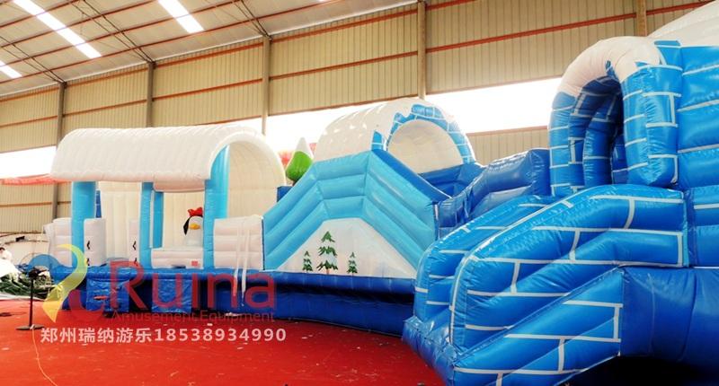 2、環(huán)保材料 冰雪世界充氣城堡用一等環(huán)保夾網(wǎng)PVC為產(chǎn)品原材料進行產(chǎn)品生產(chǎn),無毒、無危、無刺激性,對皮膚不會引起過敏反應,尤其是小孩子。